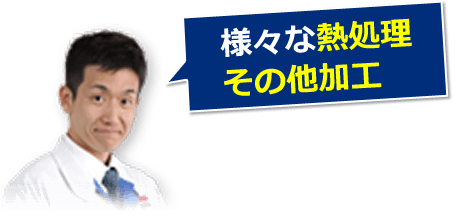 その中から、代表的な熱処理や金属加工についてご紹介いたします。記載のない加工処理についても対応できる場合がありますので、お気軽にご相談ください。