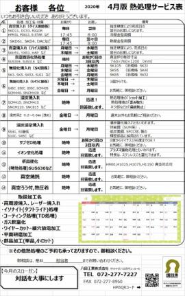 サービス表は毎月1日に更新されます。